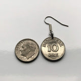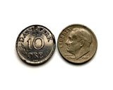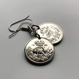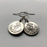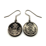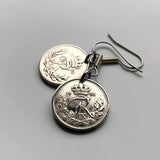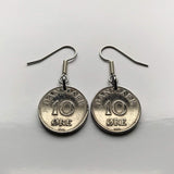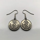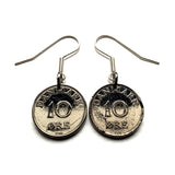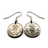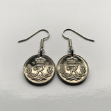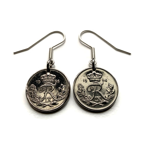 Denmark Danmark 10 Ore coin earrings Danish royal crown initial R Copenhagen Aarhus Odense Aalborg Esbjerg Dane Randers Kolding Horsens Funen Jutland Viking Scandinavia Nordic Roskilde Syddanmark Aabenraa Hillerød Zealand Vendsyssel Faroese Amager e000373