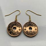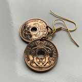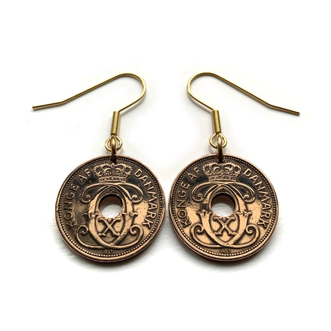 Dinamarca Danmark 2 Pendientes de monedas de mineral joyería de moda Corona danesa inicial CX Copenhague Aarhus Odense Aalborg Escandinavo Esbjerg Danes Danskere Randers Kolding Zelanda Fionia Islas Feroe Jutlandia Vendsyssel Thy e000526