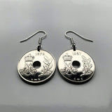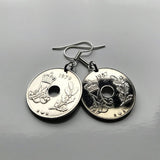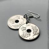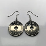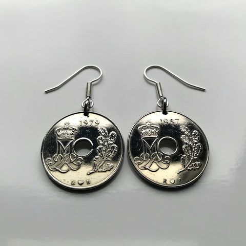 Denmark Danmark 25 Ore coin earrings Danish royal crown initial M Copenhagen Aarhus Odense Aalborg Esbjerg Dane Randers Kolding Horsens Funen Jutland Viking Scandinavia Nordic Roskilde Syddanmark Aabenraa Hillerød Zealand Vendsyssel Faroese Amager e000340