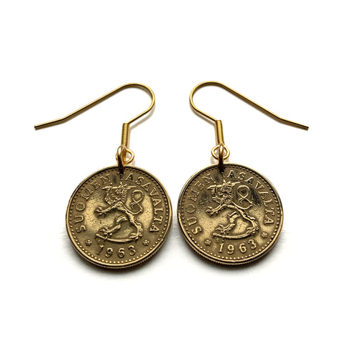 Finlandia Suomi 10 Pennia moneda pendientes joyería león finlandés Helsinki Espoo Finnic Nordic Tampere Vantaa Oulu Turku Lahti Savonlinna Uusimaa Pirkanmaa Jyväskylä Porvoo Vikings árbol de la vida e000072
