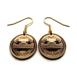 Japón Nippon Nihon pendientes de monedas Joyería de moda japonesa Salón Phoenix Salón Amida Byōdō-in Templo budista Byodoin Uji Kyoto Amitābha Estatua del buda Amitāyus Secta Tendai-shū Secta Jōdo-shū Budismo de la Tierra Pura Monje budista Mahāyāna Hōnen Período Kamakura Tokio Nara Keihanshin Osaka Kobe Kansai Región de Kinki hōō fushichō fénix