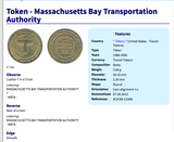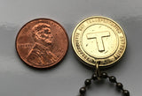 Boston MBTA Massachusetts Bay Transportation Authority token coin pendant necklace subway train bus transit transportation commuter rail initial T CharlieCard CharlieTicket Worcester Providence Lowell Cambridge Quincy Manchester Concord Harvard n001072