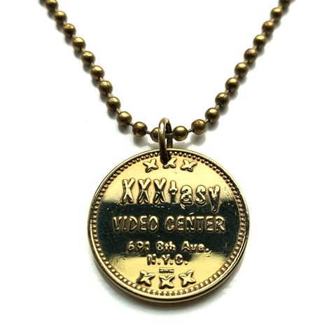 Estados Unidos Nueva York NYC Adulto Peepworld XXXtasy video center token colgante collar joyería strip tease peep show Times Square 42nd Street 8th Avenue Manhattan atrevido XXX bailarina exótica stripper burlesque cabaret club de striptease discoteca bailarina go-go despedida de soltero baile erótico desnudo Ellwest Stereo Theatres Jolar Cinemas