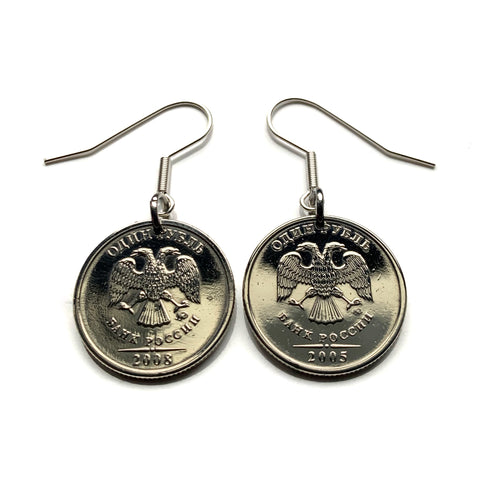 Rusia Rossiya 1 rublo moneda pendientes águila bicéfala Moscú San Petersburgo Novosibirsk Ekaterimburgo Nizhny Novgorod Kazán Sochi Ivanovo Volga Petergof Pyatigorsk Astrakhan Samara Chelyabinsk Pedro el Grande San Jorge Kitay-gorod e000423