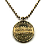 SEPTA Autoridad de Transporte del Sureste de Pensilvania Moneda simbólica colgante collar joyería Filadelfia Filadelfia tránsito rápido autobús trolebús metro línea de alta velocidad tranvía tren ligero Good For One Fare SEPTA Key Card Bucks Chester Delaware Montgomery Roosevelt Boulevard Broad Street Line Center City Jefferson Station Reading Terminal Market–Frankford Line Regional Rail 15th 19th Street station Upper Darby Township Norristown Market Street