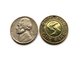 • Ficha de latón pulido desmonetizada {ya no está en circulación}