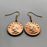 Taiwan Republic of China ROC Formosa 1 New Dollar coin earrings jewelry Chiang Kai-shek military leader Sun Yat-sen Kuomintang sun Taipei Xinhai Revolution Blue Sky White Sun Hokkien Taichung Kaohsiung Banqiao Chinese Tainan Hsinchu Keelung Chiayi e000546
