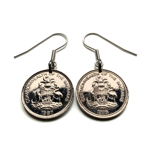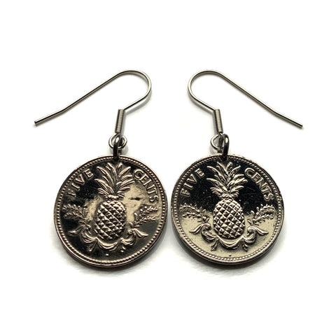 Pendientes con moneda de 5 centavos de Bahamas, piña de las Bahamas, Nassau, Andros, Exuma y Cays, fruta tropical, Cat Island, Rum Cay, Cable Beach e000195