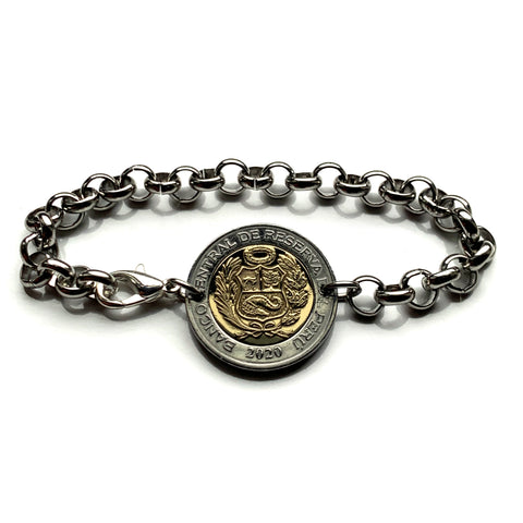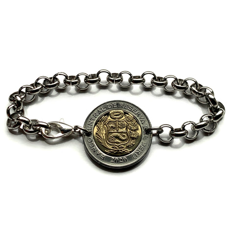 Pulsera de eslabones de cadena con moneda de 1/2 sol de Perú, con forma de llama, alpaca peruana, vicuña, Cuzco, Lima, camello, moda Inca, Machu Picchu, genial b000005