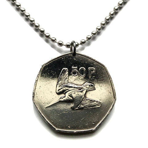 Irlanda Éire 50 Pingin moneda colgante collar Woodcock pájaro arpa irlandesa Cláirseach Dublin Cork Limerick Galway Waterford Drogheda Swords Dundalk Munster Guinness Ulster Connacht Leinster n002472