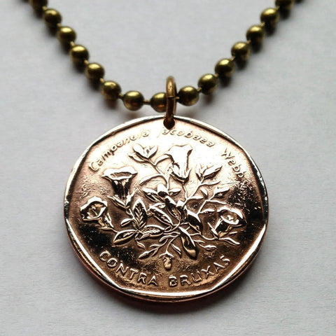 1994 Cape Verde Cabo Verde 5 Escudos coin pendant Contra Bruxas flower flora Campanula jacobaea Praia Santiago Fogo Brava São Vicente n000683