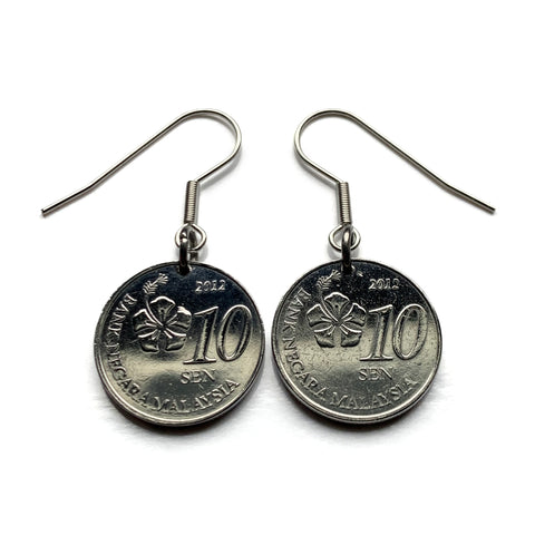 2012 Malaysia 10 Sen coin dangle & drop earrings Malay Mah Meri tribe plant weaving pattern hibiscus flower Kuala Lumpur Klang Valley Merdeka Square Bukit Bintang Istana Negara Petaling Jaya Bukit Nanas Damansara Mont Kiara Sri Hartamas Taman e000678