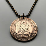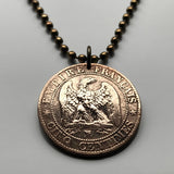 1862 France 5 Cents coin pendant French eagle Paris Lyon Marseille Lille Toulouse Bordeaux Nantes Strasbourg Montpellier Rennes Reims Avignon Le Havre Saint-Étienne Versailles Carcassonne Nice Brest Mont-Saint-Michel Tours Côte d'Azur Val de Loire n000869