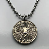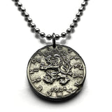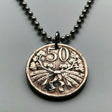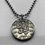 1922 Czechoslovakia 50 Haleru coin pendant Czech lion Slovak shield Prague Praha Charles Bridge Bohemia Bratislava Moravia Czech Silesia Brno Karlštejn Castle Kutná Hora Hradčany n000183