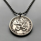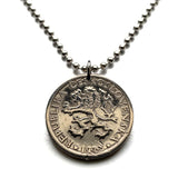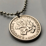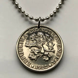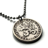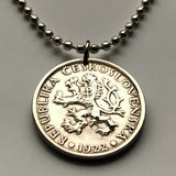1922 Czechoslovakia 1 Koruna coin pendant Czech lion Slovak shield double cross Prague Bratislava Bohemia Moravia Charles Bridge Czech Silesia Praha Karlovy Vary Bojnice Cesky Krumlov Brno Plzen Kutna Hora n000180