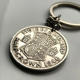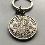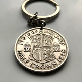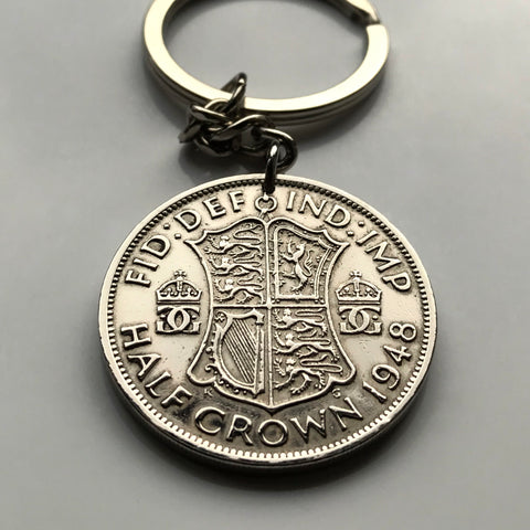 UK United Kingdom Great Britain 1/2 Crown coin keychain keyring pendant necklace British Royal arms English lions England Irish harp Northern Ireland Scottish lion Scotland Welsh dragon Wales London Belfast Edinburgh Cardiff Tudor k000005
