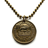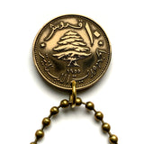 1955 Lebanon Liban 10 Piastres coin pendant Lebanese Phoenician Bireme oared warship ship galley sailing boat mariners Mediterranean Sea Nahr el-Kalb river the Levant cedar tree Tyre Sidon Saira Byblos Beirut Tripoli Jounieh Zahlé Aley Beqaa n003825