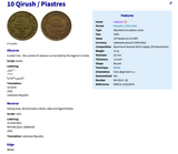 1955 Lebanon 10 Qirush / Piastres {1-year issue}