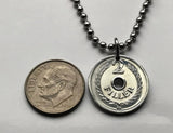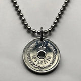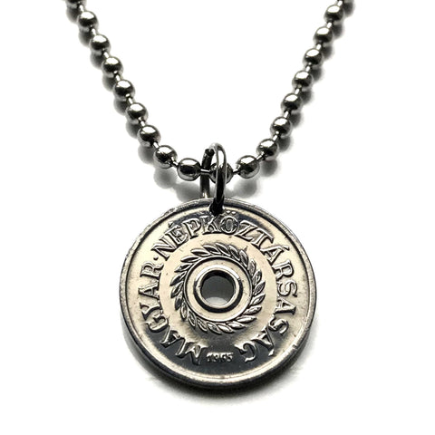 1965 Hungary Magyar 2 Filler coin pendant necklace Hungarian jewelry Budapest Gellert Hill Debrecen Szeged Miskolc Pecs Gyor Nyiregyhaza Kecskemet Lake Balaton Somogy Hajdu Bihar Csongrad Csanad Komarom Esztergom Erzsebetvaros Saint Stephen Eger n003105