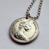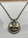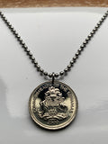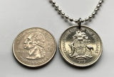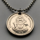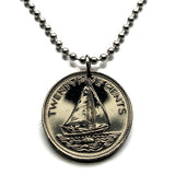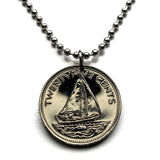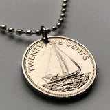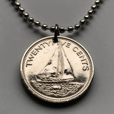 Bahamas 25 Cent coin pendant Bahamian Sloop sailboat Nassau Andros Exuma & Cays Junkanoo Rose Island Rum Cay Paradise Island Pineapple Fest Gregory Town Blue Lagoon Lucayan New Providence Eleuthera Grand Bahama Gold Rock Coco Plum Beach n000204