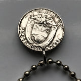 1980 Panama 1/10 Balboa coin pendant necklace jewelry armored helmet Vasco Núñez de Balboa Vista Alegre Santiago de Veraguas Colón Casco Viejo Coronado San Miguelito Las Cumbres La Chorrera n000260