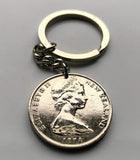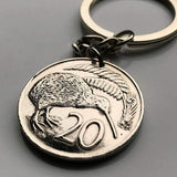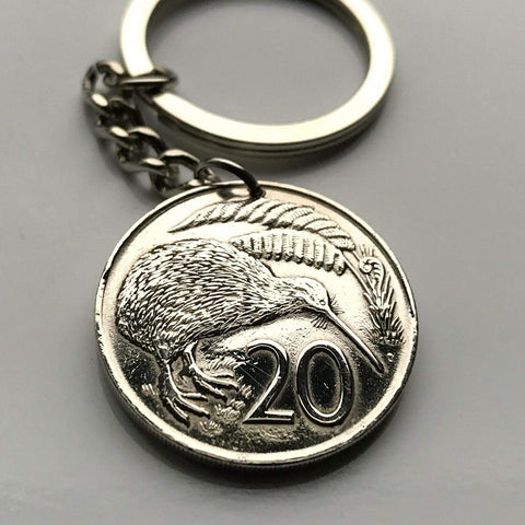 1977 New Zealand 20 Cents coin pendant necklace jewelry Kiwi bird Wellington Marae Koruru Hawaiki North South Island haka dance endemic cute n000256