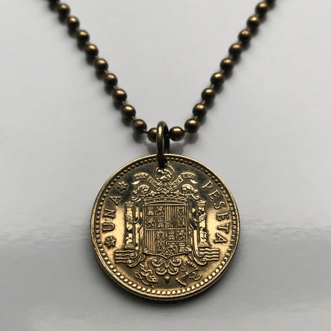 1975 Spain España 1 Peseta coin pendant escudo Español Madrid Barcelona Sevilla Toledo Malaga Granada Cadiz Córdoba Valencia Bilbao Coruña Castile Leon Aragon Navarre Spanish Cataluña Basque n000454
