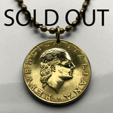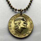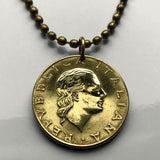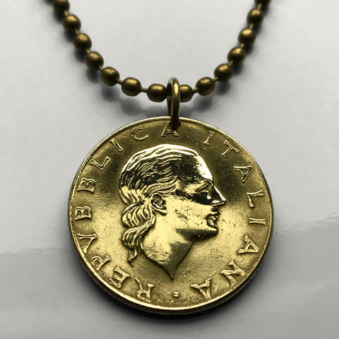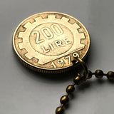 1980 Italy 200 Lire coin pendant necklace jewelry Italian lady Rome Milan Venice Florence Verona Torino Napoli Bologna Siena Palermo Modena Genoa Parma Lecce Matera Perugia Cagliari Tuscany Capri Bari Trieste n000221