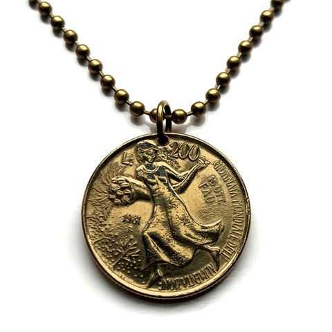 1981 Italy 200 Lire coin pendant Italian girl World Food Day Rome Florence Milan Venice Napoli Verona Torino Bologna Pisa Siena Tuscany Lecce Ravenna Cagliari Perugia Pisa Genoa Matera San Gimignano Palermo Parma Trieste Modena Treviso Ferrara n000628