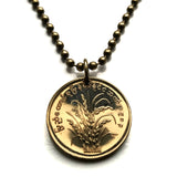 1983 Myanmar Burma 10 Pyas coin pendant necklace Burmese jewelry rice plant blossom Bamar Yangon Naypyidaw Mandalay Bago Hpa-An Taunggyi Monywa Myitkyina Mawlamyine Magway Kayin Sagaing Kachin n000840