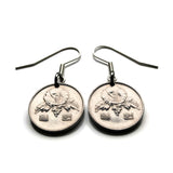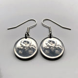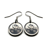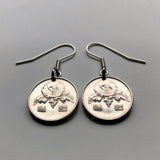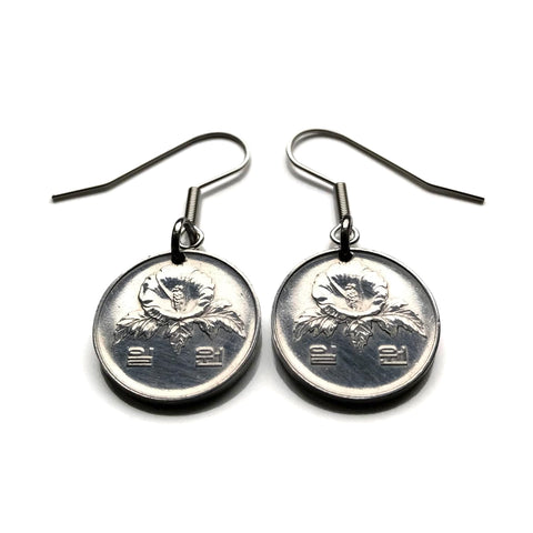1985 South Korea 1 Won coin earrings jewelry Korean Rose of Sharon Mugunghwa blossom national flower Seoul Busan Incheon Joseon dynasty Goryeo kingdom Daegu Daehan Minguk Hangul Koryŏ e000521