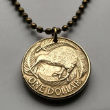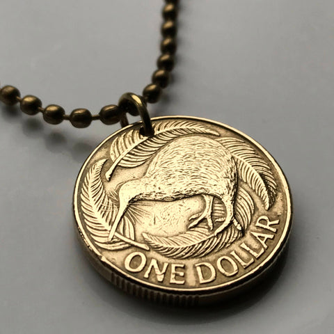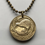 2002 New Zealand 1 Dollar coin pendant necklace jewelry Kiwi bird Wellington Maori Pacific island Oceania British Hawaiki North South Island haka n001336