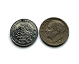 1993 Mexico 10 Centavos coin pendant aguila Mexicana Ecatepec Juárez Culiacán Jalisco Cuernavaca Oaxaca Tijuana Veracruz Toluca Chiapas Pachuca Guadalajara Morelia Hidalgo Yucatán Monterrey Puebla Cancún León Aztecas Acapulco Durango Zócalo n003713
