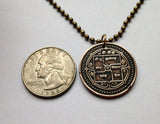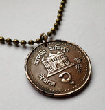 2003 Nepal 2 Rupee coin pendant Janaki Sita Mandir Hindu Temple Janakpur Janakpurdham Dhanusa Madhesh Pradesh Trishula trident crescent moon sun Shri श्री Sanskrit Chakra Wheel Shank Gadha Mace Padma Lotus Yoga Himalayas Mount Everest kukris knife n001186