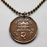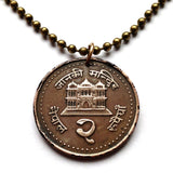 Nepal coin pendant necklace Nepali Nepalese fashion jewelry Janaki Sita Mandir Hindu Temple Janakpur Janakpurdham Dhanusa Madhesh Pradesh Trishula trident crescent moon sun Shri श्री Sanskrit Chakra Wheel Shank Conch Gadha Mace Padma Lotus Yoga Himalayan mountains Mount Everest kukris knife Nau Lakha Mandir Kathmandu Koiri Hindu architecture Madhubani Mithila art Vivaha Panchami Rama Navami Dashain Tihar Sita Swayamvara Ramayana Vishnu Hinduism Maithili language Valmiki Devanagari script