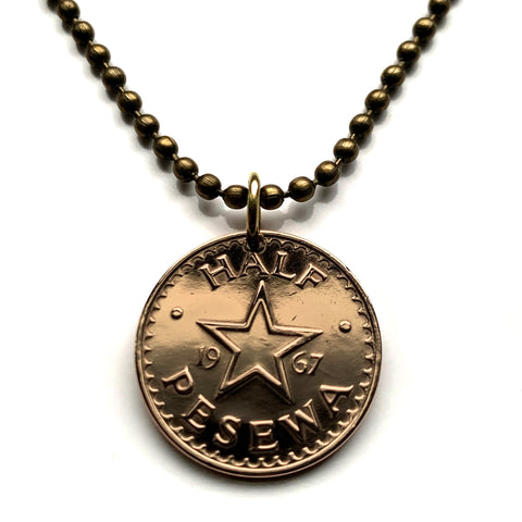 1967 Ghana 1/2 Pesewa coin pendant necklace jewelry Akan Adowa Bush drums Accra Black Star of Africa Kumasi Gold Coast Tamale Takoradi Atsiaman Asante Ashanti Dagomba Volta Mole-Dagbon Cape Coast Osu Wa Ewe Ga West African n000086