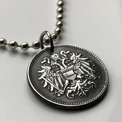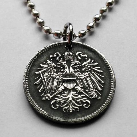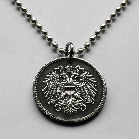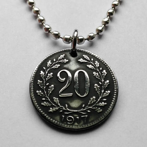 1918 Austria Österreich 20 Heller coin pendant necklace jewelry Austrian double headed eagle Austro Hungarian empire Habsburg Vienna Salzburg Graz Linz Innsbruck Villach Tyrol Styria Wels Sankt Pölten Carinthia Sölden Alps n000732