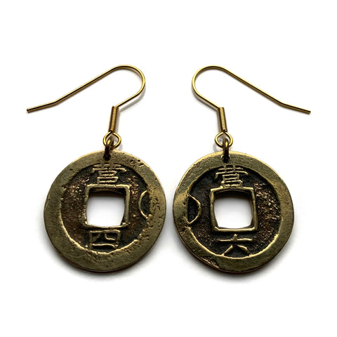 antique! 1742 Korea 1 Mun cash coin drop dangle earrings Yeopjeon Sangpyeong Tongbo Joseon Yi Dynasty Seoul Busan Incheon Daegu Daejeon Hangul Hanja Joseon Kingdom Goguryeo Baekje Silla Jeju Ho e000683