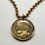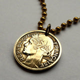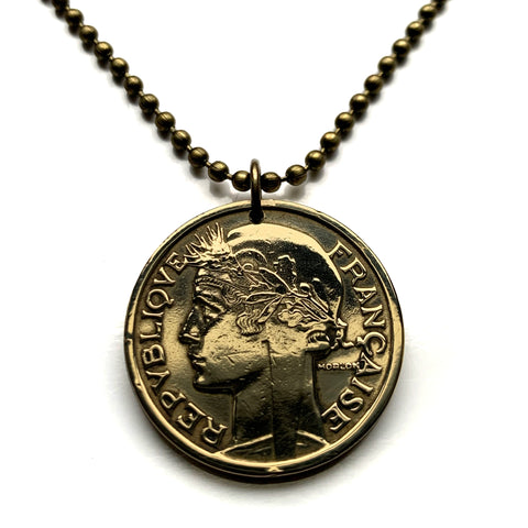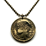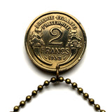 France 2 Francs coin pendant necklace jewelry Marianne French La Semeuse phrygian cap Paris la Fête nationale Louvre Seine river n000455