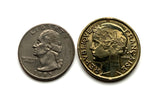 • demonetized {no longer in circulation} polished Aluminium-bronze coin