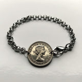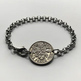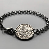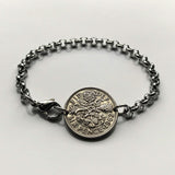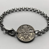 United Kingdom 6 Pence coin bracelet English Tudor Rose Scottish Thistle Irish Shamrock Welsh Leek England Scotland Ireland Wales wedding keepsake bridesmaid London Belfast Edinburgh