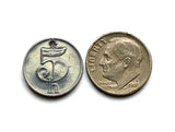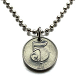 1979 Czechoslovakia Czech Republic Slovakia 5 Haleru coin pendant necklace jewelry Czech lion Slovak shield socialist republic Prague Cesky Krumlov Bratislava Bohemia Moravia Charles Bridge Brno Cesky Krumlov Kutná Hora Ostrava n002513