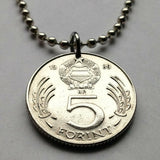 1985 Hungary Magyar 5 Forint coin pendant Hungarian Socialist Workers Party communist Kádár badge shield soviet union Lajos Kossuth Budapest Debrecen Kecskemét Lake Balaton Somogy Eger Miskolc Szeged Pécs Győr Komárom Esztergom Saint Stephen n001973