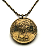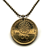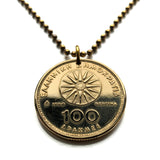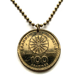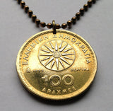 1992 Greece Hellas 100 Drachmes coin pendant necklace fashion jewelry Alexander the Great Star of Vergina Hellenic war king of Macedonia Attica Rhodes Crete Sparta Athens Santorini Thebes Pella Delphi Argos n001089