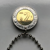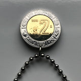 1992 Mexico 2 Pesos coin pendant necklace jewelry Mexican eagle Ecatepec Guadalajara Puebla Juárez Tijuana León Monterrey Acapulco Yucatán Cancún Cuernavaca Oaxaca Jalisco Morelia Toluca Pachuca Chiapas n001126