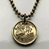 1996 Spain España 5 Pesetas coin pendant La Rioja Dancer of Anguiano Revellín Porch Dancer of Anguiano Logroño Liberian festive dance Batalla del vino Español Madrid Barcelona Sevilla Asturias Granada Catalan Andalusia Castile Leon Aragon Malaga n000230