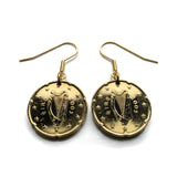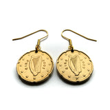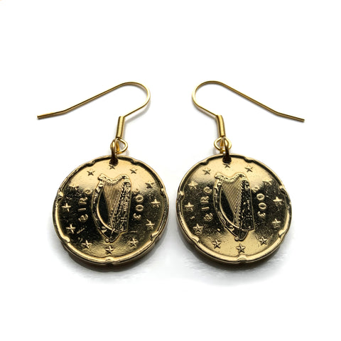 2003 Ireland Éire 20 Euro Cent coin earrings Irish Celtic Harp Cláirseach Dublin Cork Limerick Galway Waterford Gaelic Guinness Connacht Leinster Munster Donegal Ulster Carlow Drogheda Swords Gartan Icovellavna Galway Dundalk Moher Airlann e000324