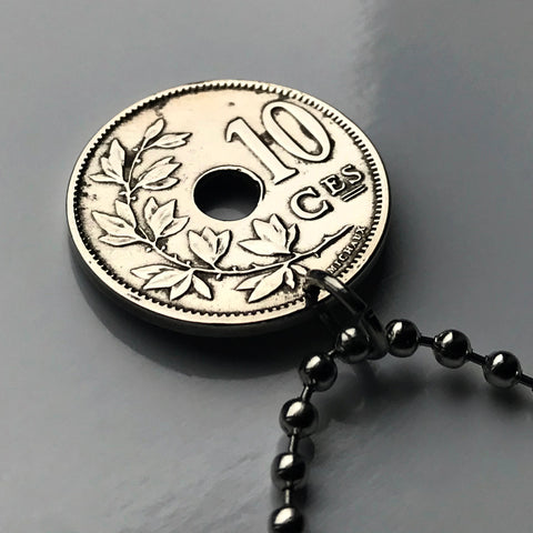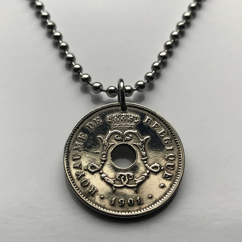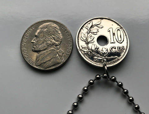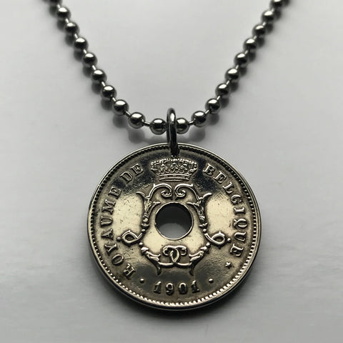 1901 Belgium Belgique Belgie 10 Centimes coin pendant necklace Belgian jewelry initial L Brussels Antwerp Bruges Ghent Antwerpen Liège Charleroi Namur Mons Flanders Flemish Limbourg Mechelen Leuven Ostend Ardennes n003240