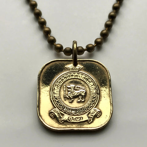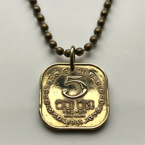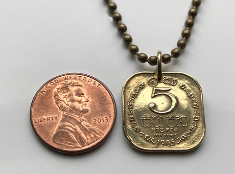 1963 Ceylon Sri Lanka 5 Cent coin pendant golden lion Colombo Kotte Sinhalese Buddhism Anuradhapura Kataragama Sabaragamuwa British n000307
