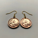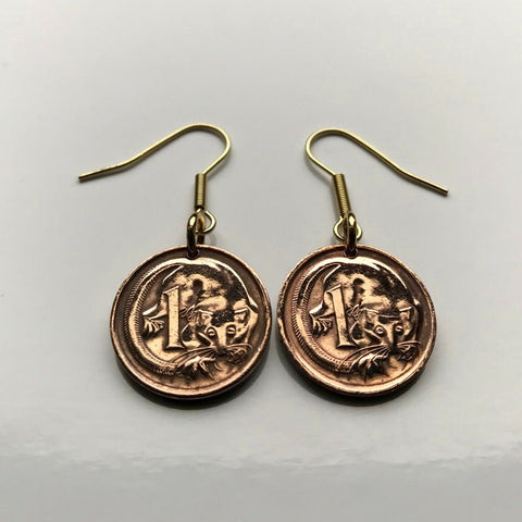 Australia 1 Cent coin earrings Feather-tailed Glider Pygmy Gliding Possum Sydney Melbourne Perth Canberra Brisbane Adelaide Darwin Queensland Victoria Hobart Palmerston land down under Tasmania Townsville Alice Springs Gold Coast New South Wales e000005